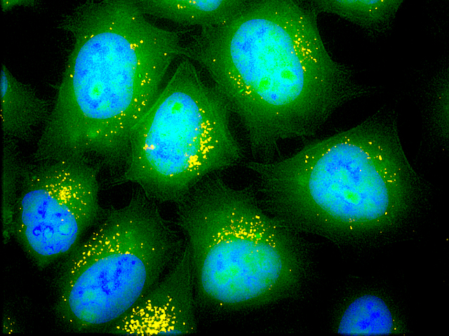 Grans figures de l'esport no arriben al desenvolupament total del seu potencial fins que un bon entrenador no els dóna instruccions clares que els ajuden a treure el màxim rendiment. Com els prodigis prometedors però mal guiats, les cèl·lules sovint tenen una gran capacitat de curar malalties de l'organisme, però els falta l'impuls necessari per a fer-ho. L'ARN missatger (ARNm) és una molècula que pot induir les cèl·lules a dur a terme determinades accions, per la qual cosa és prometedor a l'hora de tractar moltes malalties i explotar tot el potencial de les cèl·lules, però no és fàcil transportar-lo al lloc adequat. Ara, els investigadors han creat una nova variant d'ARNm inhalable, que podria portar a nous tractaments per a malalties pulmonars com el càncer i la fibrosi quística. Aconseguiren que unes cèl·lules pulmonars de ratolí produïren una proteïna verda (a la imatge) després de la inhalació de partícules (en groc). Si, a més, poden aconseguir la producció de proteïnes terapèutiques, els nostres mateixos pulmons podrien convertir-se en fàbriques de fàrmacs, produint l'antídot exactament allà on es necessita.