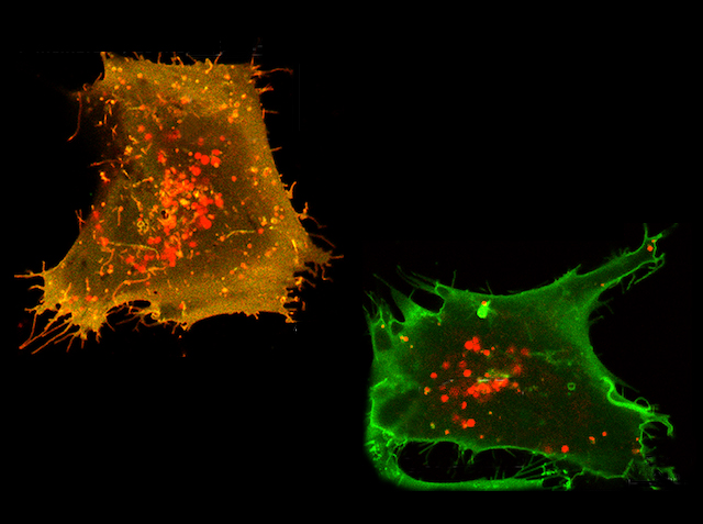 Bloquejar la gemmació dels virus (és a dir, quan s'emboliquen al voltant de la membrana de la cèl·lula hoste i se solten per a propagar la infecció) podria ser una bona estratègia per aturar-los. Els investigadors interessats en els alfavirus, un grup que inclou els virus de chikungunya i Sindbis, van examinar el paper d'una proteïna anomenada 6K en el muntatge i la propagació del virus. Van trobar que funciona com un canal per a deixar passar les molècules a través de les membranes, com s'ha vist a les proteïnes del VIH i de la grip. Aquesta activitat dels canals iònics era necessària per a la formació de vacúols a la cèl·lula, que afavoreixen el transport de proteïnes al revestiment cel·lular, on s'incorporen a noves partícules virals (aquestes proteïnes de color roig s'estenen a través de la membrana, a l'esquerra; en comparació amb les de l'amuntonament que es forma en absència de 6K, a la dreta). Interferir amb l'acció de 6K podria ser una nova manera de tractar la infecció i evitar que ocórrega la gemmació.