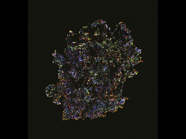 Els cultius cel·lulars tridimensionals, que imiten de forma més precisa l'entorn natural de les cèl·lules, s'utilitzen cada vegada més per fer millors proves de medicaments, i també podrien ajudar a reparar teixits danyats. Amb aquesta finalitat, els investigadors van desenvolupar una tècnica per cultivar cèl·lules mare neurals humanes (hNSCs) en una armadura de pèptids autoensamblats, proteïnes artificials que s'autoorganitzen en estructures 3D. A diferència d'altres mètodes, aquest enfocament no involucra teixits animals, el que el fa més adequat per a pacients humans. Les proves inicials en rates amb lesions de la medul·la espinal suggereixen que els trasplantaments amb aquests cultius poden estimular la recuperació dels teixits neurals: les hNSC es van implantar i van diferenciar amb èxit en diversos tipus de cèl·lules neurals, i la mobilitat de les rates va millorar. Les hNSC trasplantades van exercir la seua tasca inclús millor quan es van cultivar durant sis setmanes i va incentivar la diferenciació abans del trasplantament (com es mostra a la imatge, amb els nuclis cel·lulars en blau, les neurones en verd i els astròcits de suport en vermell), el que proporciona nous coneixements sobre com es poden realitzar els trasplantaments de cèl·lules mare d'una manera més efectiva.