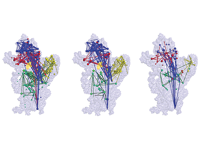 Totes les cèl·lules, siguin animals, vegetals, fúngiques o bacterianes, estan empaquetades amb proteïnes. Hi ha proteïnes que construeixen estructures cel·lulars, duen a terme les reaccions químiques que produeixen energia, o envien i reben senyals, així com tot el que es necessita per a la vida. Però totes aquestes proteïnes s’han de fer en primer lloc. Aquest és el treball dels ribosomes - "fàbriques" moleculars construïdes a partir de proteïnes i ARN [una substància química molt similar a l'ADN]. Els investigadors han estat utilitzant tècniques analítiques detallades per investigar com els ribosomes dins de la bactèria viva canvien de forma a mesura que construeixen proteïnes, i com un antibiòtic anomenat espectinomicina s’uneix a elles i deté la producció. Les taques grises d’aquesta imatge mostren l’estructura d’un ribosoma bacterià, mentre que els cercles i les línies de colors ressalten els llocs afectats per l’espectinomicina, posant en evidència com els bacteris poden desenvolupar resistència als antibiòtics alterant parts específiques de les seues proteïnes ribosòmiques o ARN.
