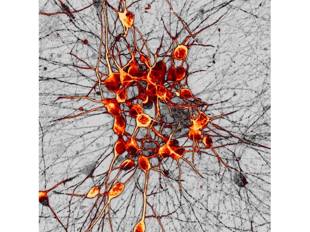Les neurones es comuniquen amb substàncies químiques: esclats de neurotransmissors que passen senyals d'una cèl·lula a una altra. Tot i que els milions de neurones del cervell poden semblar una mica caòtiques, la seua conversa química es troba en un equilibri fi que canvia amb l'edat i la salut. Normalment, les neurones dopaminèrgiques expulsen un neurotransmissor anomenat dopamina a diferents zones del cervell, que influeixen en processos com el moviment, la recompensa i la motivació. Ací els investigadors cultiven en una placa neurones dopaminèrgiques humanes (ressaltades en taronja) a partir de cèl·lules mare. Amb tants rols importants al cervell, investiguen com es deterioren les cèl·lules a la malaltia de Parkinson; concretament, com una substància química tòxica anomenada alfa-sinucleïna (que s'acumula en el Parkinson) afecta les cèl·lules cultivades. El següent pas és veure si els nous fàrmacs poden frenar o aturar l'alfa-sinucleïna, evitant els símptomes.