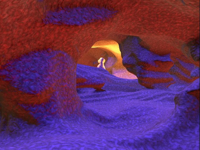 La bellesa està als ulls de qui mira, o això diuen. Aquests, però, probablement no són el xicotet sistema de coves i túnels en el qual estan pensant tots els vells romàntics. Aquesta vista dels vasos sanguinis de darrere de l'ull ha sigut acoblada des d'un escàner làser de l'ull, digitalment millorat i acolorit. El terreny en 3D resultant ha sigut artificialment il·luminat -més o menys com el paisatge d'un videojoc- i convida a explorar-lo. Cartografiar l'ull d'aquesta manera no ens serveix solament per a fer turisme a xicoteta escala, com podríem pensar. Aquests vasos, procedents de la coroide, subministren al voltant del 70% de la circulació de la sang a l'ull i qualsevol problema pot conduir a una visió borrosa o inclús ceguesa. La tècnica utilitzada, anomenada tomografia de coherència òptica, s'està testant com a eina de diagnòstic per a les malalties retinals i per detectar protuberàncies que podrien ser canceroses.