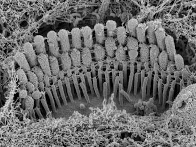 Durant el desenvolupament, la forma i la posició exactes dels nostres òrgans no depèn només dels models genètics, sinó també de multitud de bucles de retroalimentació, que enllacen la forma i funció per afinar els resultats. Investigacions recents suggereixen que això es produeix a les cèl·lules ciliades de l’orella interna, responsables de la nostra audició, ja que la seva capacitat de produir senyals els proporciona la seva forma particular. Dins d'aquestes cèl·lules, un munt d’estereocilis amb forma de pèl es doblen com a resposta a les vibracions de l'aire, obrint i tancant canals que controlen el flux d'ions cap a la cèl·lula. Aquest procés de transducció del senyal canvia la càrrega elèctrica de la cèl·lula, produint senyals elèctrics per al cervell. Fotografiat en l'orella interna del ratolí, els estereocilis es disposen precisament en una formació esglaonada, però aquest disseny es perd si la transducció està bloquejada, ja que els estereocilis no aconsegueixen eixamplar-se i allargar-se adequadament. A més de comprendre el desenvolupament de l'orella interna, això podria ajudar els investigadors a treballar en teràpies per alleujar la pèrdua auditiva.