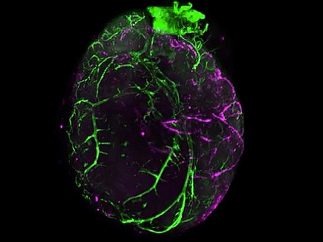 Utilitzant tècniques com la seqüenciació d'ARN de cèl·lula única i la imatgeria d'alta resolució amb l'aclariment de teixits, aquest estudi en ratolins identifica un subconjunt nerviós anomenat neurones sensorials vagals (mostrades en magenta en aquest cor de ratolí aclarit) que augmenten la innervació ventricular del cor després d'un atac de cor (infart de miocardi). Aquestes neurones es revelen com a part d'un bucle neuroimmunitari cor-cervell que presenta possibles dianes per a les teràpies de l'infart.