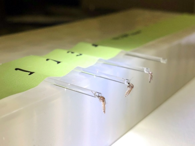 Aquests estranys clients de bar són en realitat mosquits, salivant en tubs de cristall menuts. Els investigadors están arreplegant saliva de mosquit per una raó important: per a saber si aquests insectes poden transmetre el virus Zika, que s'ha anat convertint en una amenaça per a la salud en els últims anys. La majoria dels casos en el continent americà es limiten a Amèrica del Sud i a Amèrica Central, però es possible que aquests mosquits invasors propaguen el Zika a estats del sud dels EUA. Per a descobrir si tres espècies de mosquits que arriben allí poden passar-lo, van permetre a aquests insectes alimentar-se d'un ratolí infectat amb la malaltia. Després, els investigadors arreplegaren la saliva dels mosquits i l'analitzaren per a trobar traces del virus. Encara que dos espècies de mosquits no poden transmetre el Zika, pareix que l'exemplar d'Aedes aegypti pot, suggerint que els controladors de plagues locals deurien de centrar-se en aquest per controlar la propagació del virus.